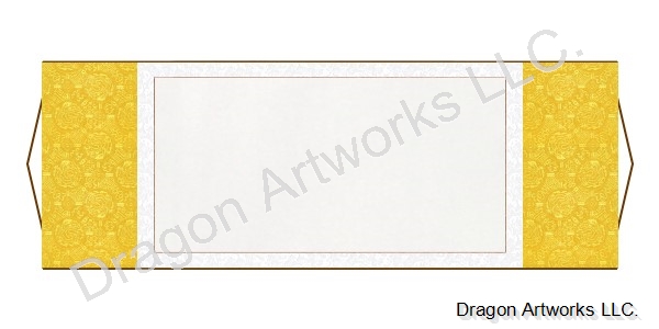Yellow is the main color used to make this large horizontal blank wall scroll, with white silk brocade surrounding the painting area. A very nice size horizontal blank wall scroll that may be used to mount finished artworks or prints, though you may also write calligraphy or paint directly on the scroll.