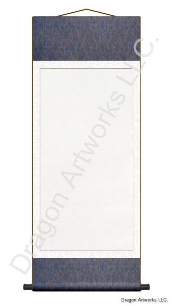 A dark blue and white silk brocade premium quality blank paper wall scroll for brush painting, calligraphy or mounting your personal artworks.